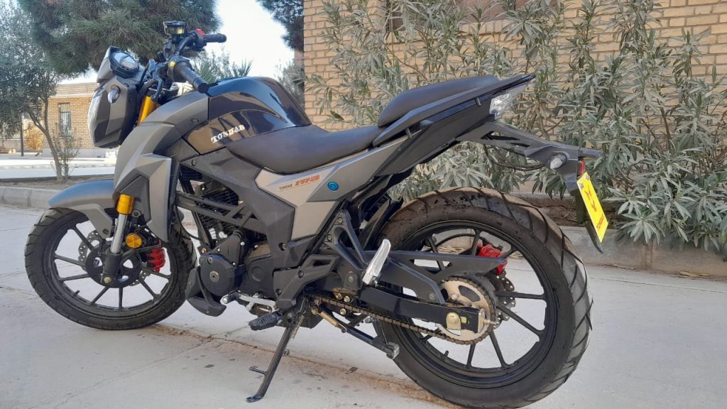 - ویژگیهای موتورسیکلت :استارت برقی، جک بغل، جک وسط، چراغ روز، دزدگیر، رینگ اسپورت